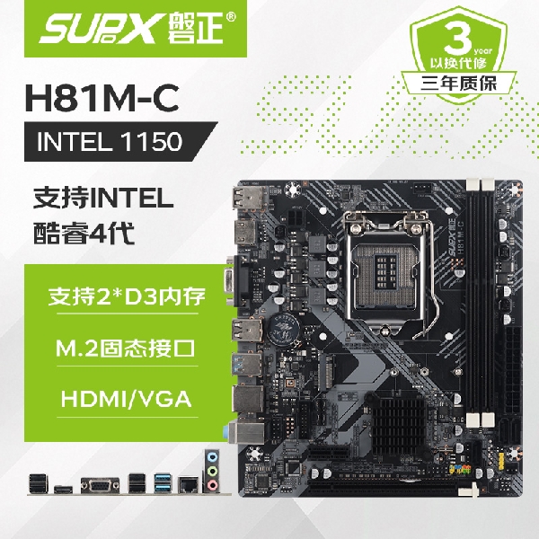 显示输出 vga hdmi 千兆网卡 5.1声卡 usb2.0*4 usb3.0*4 m.2 sata/pci ssd,sata*4 支持 2 条 DDR3 内存条 支持LGA1150针脚处理器