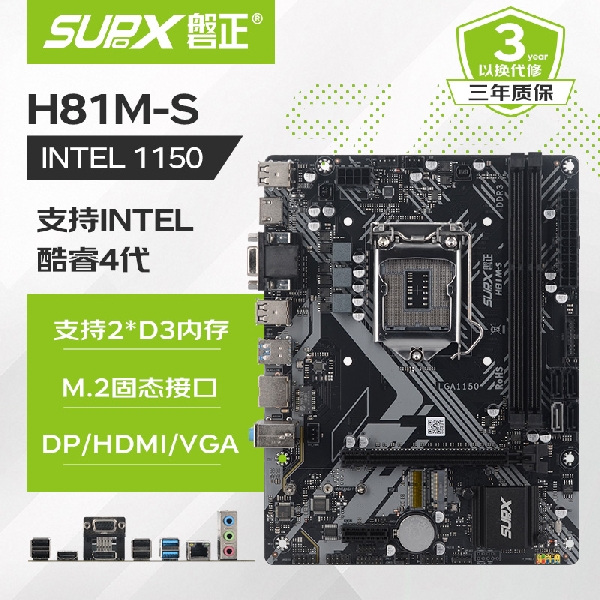 三相供电 显示输出 vga hdmi DP 千兆网卡/5.1声卡 前置usb 2.0*2 后置usb 2.0*4 usb 3.0*4 带WiFi、蓝牙模块插槽 支持双m.2协议,sata*4 支持 2 条 DDR3 内存条 支持LGA1150针脚处理器